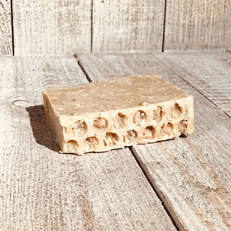 Ingrédients : huile d’olive, huile de coco bio, cire d’abeille, eau, hydroxyde de sodium, miel, mâcérat de vanille, propolis