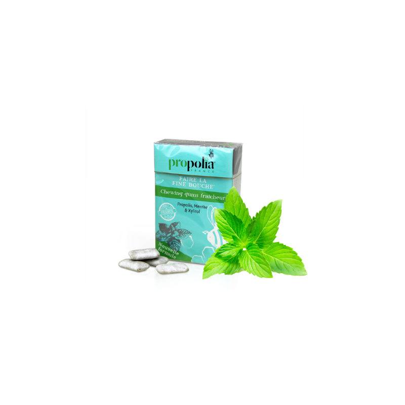 Pour qu'une haleine naturellement fraîche vous accompagne tout au long de la journée, Propolia® a créé ce nouveau chewing-gum au goût frais de Menthe... à croquer !